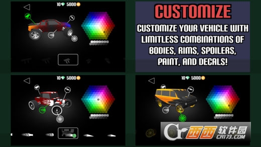 自定义您的车辆,创建你自己的赛道,在线分享,异步和全球排行榜你的朋友比赛!