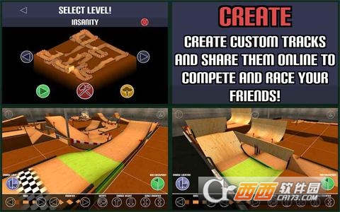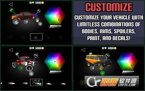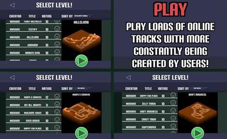 自定义您的车辆,创建你自己的赛道,在线分享,异步和全球排行榜你的朋友比赛!