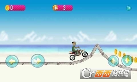 3.驾驶小摩托在崎岖不平的道路上行驶,尽可能多的搜集金币!