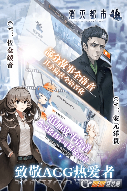 《消灭都市》以现代的日本为舞台,是结合动作、剧情、RPG等元素为一体的新感觉游戏。该作的操作简便,横版卷轴动作游戏让人感到爽快,吸引人的剧情过足RPG瘾。玩家在游戏屏幕上只需要通过点击和滑动,就可以完成跑酷游戏一般的在都市内的华丽驰骋。男主角和女主迷之少女分别由杉田智和和花泽香菜担当。两个人以突然消失的都市为目标所展开的冒险,结局会如何?