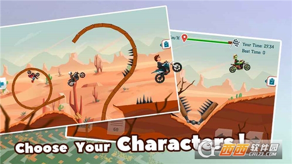 越野赛车与实际控制面独特的坏上坡及下坡环境的挑战将考验你的摩托车驾驶技能,它可以帮助你成为一个伟大的自行车赛车。