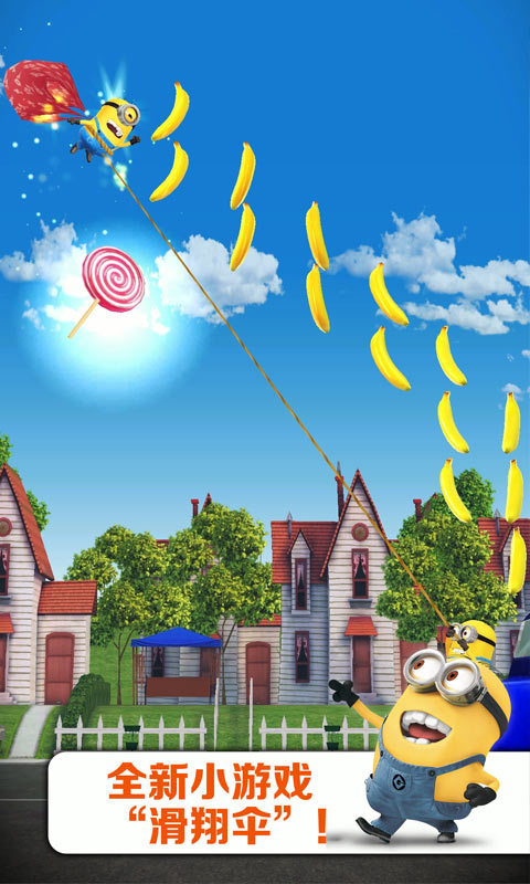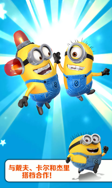 游戏全面融合了电影元素,讲述了小黄人们为了争夺老板格鲁设立的“年度小小兵”奖项,开始的一段搞笑的赛跑竞赛的故事。进入游戏,玩家会发现跑酷场景设置在格鲁的加工厂中,小黄人不仅要闪躲障碍物,还在奔跑途中尽可能吃掉更多香蕉。如果躲避不及时,撞上了障碍物,呆萌的小黄人可是需要缓一会儿才能够醒过来哦。游戏还采用了3D模式,无与伦比的3D效果,视角变化多样,再结合原电影中的有趣的音响效果,让玩家觉得可爱的“小黄人”栩栩如生、触手可及。