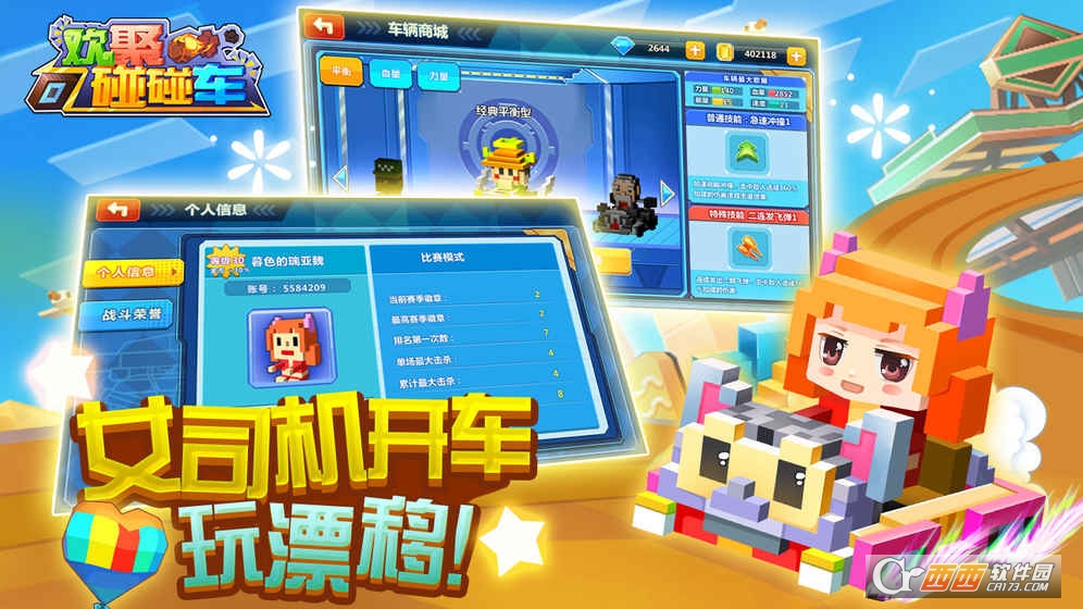 2、超丰富的各色碰碰车和好友一起掌上对战,简单明了操作玩法给你新激情!
