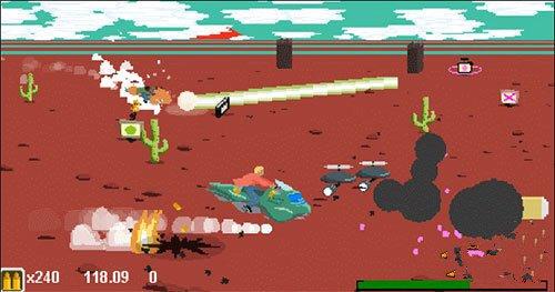 2.游戏不止于竞速。我们看到游戏还融合射击元素。