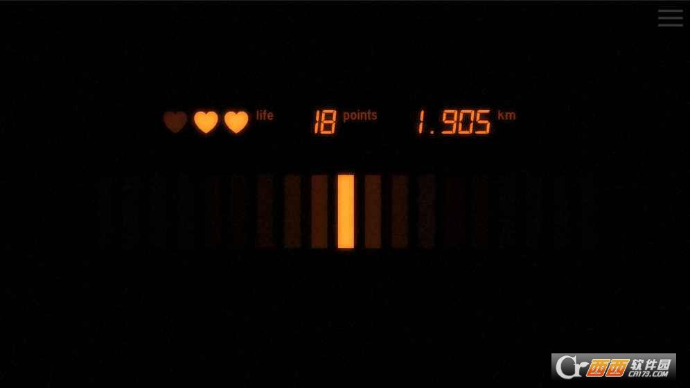这是一款老司机开车躲避对面开来的车的游戏,没有具体画面,躲避全靠听力。游戏有比较简单的剧情,也有几大关卡吧,比如加速关,关窗关,音乐关,隧道关,农场关,GPS关,下雨关(记不住具体顺序了,但是我打到下雨关这里暂时卡住了)。如果你过了一个大关的话,会自动给你存个档并且会有简短的剧情给你喘口气,下一次点继续游戏的时候就是直接在最后一大关继续游戏了。并且你每过十几辆车还是二十几辆车的时候会恢复你的生命值,所以不用太害怕每一次死掉。(我能说最高14km全靠恢复生命顶过去的咩)