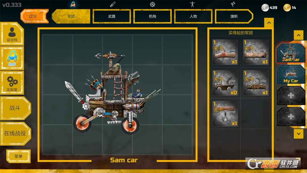 -按照自己的方法获得军车的性质可以把补充零件与武器配合。