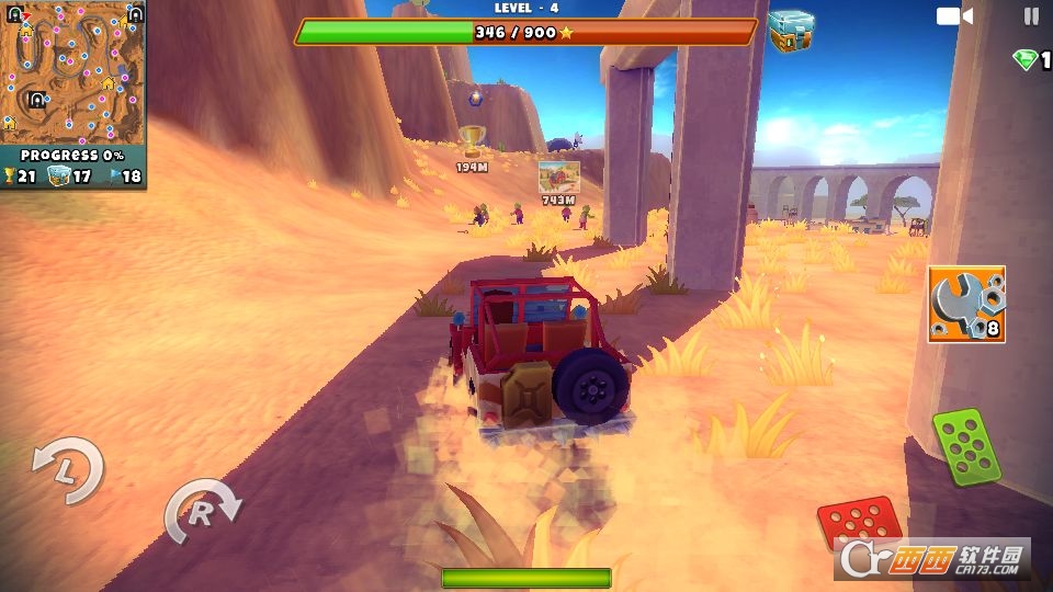 一个越野车的沙盒游戏,自由度足够高,车子的操作性也挺好,就是钻石收集的速度太慢了点。
