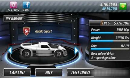 2、购买你的梦想座驾,自由调校升级爱车并在1/4或1/2英里直线加速赛上展现你的驾驶技术!