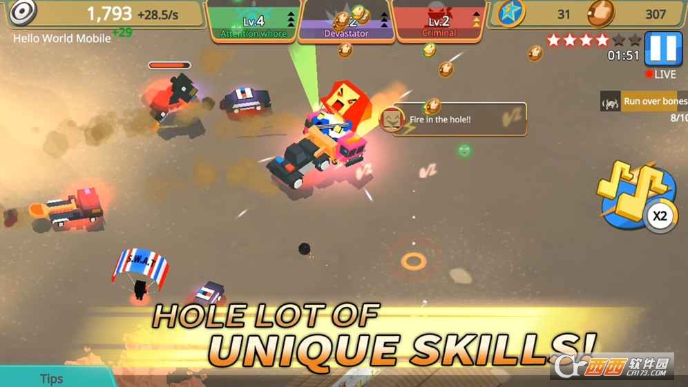 2.只有高速行驶的车辆才能对你造成伤害,多利用这一点去撞毁他们吧!