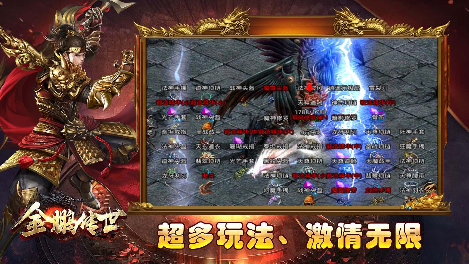金鹏传世为玩家带来经典的传世传奇,在游戏中玩家将要加入到庞大的传奇世界中,所有的装备全靠打,各种强力的神装轻松获得,掉落的物品自动拾取,加入到刷怪打金的战斗中,享受刀刀暴击的爽快体验,快速提升自己的战实力,书写你的传奇冒险。