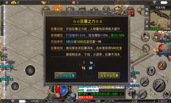 天猫复古176为玩家带来经典复古的传奇玩法,经典的画面风格,各个场景都非常的精彩,还原诸多版本的玩法,游戏内无任何的暗坑和套路,尽情地享受刀刀暴击的爽快体验,获得遍地光柱的震撼感受,书写属于你的传奇冒险旅程。 天猫复古176玩法介绍 1.散人上去优先....