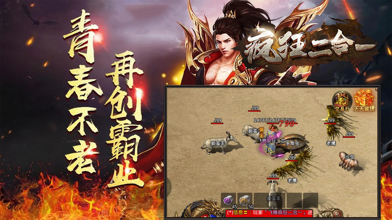 飞腾疯狂二合一为玩家带来相当爽快的传奇挑战,经典的三大职业选择,广阔的传奇世界等待着你的探索,超多的boss和野怪能够尽情地挑战,轻松获得大量的神装资源,提升自己的战斗实力,开启爽快的战斗对决,完成诸多不同的试炼任务,畅享精彩的传奇冒险。