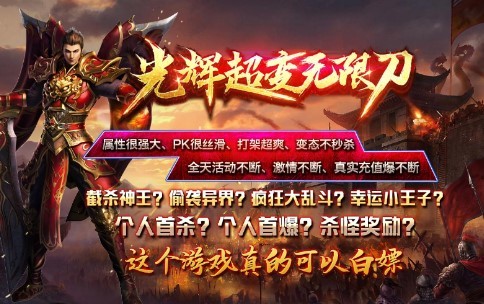 光辉超变无限刀传奇来袭,无限刀传奇竞技游戏,趣味超变竞技传奇,传奇礼包:5000000元宝*1,斗罗磨核*80,时装结晶*100,游戏资源轻松白嫖,多变传奇服务器轻松尝试,各色活动轻松尝试,激情无限的传奇大乱斗竞技,杀怪轻松爆出传奇奖励,真实的传奇充值奖励,非常值得去尝试的传奇竞技冒险游戏。