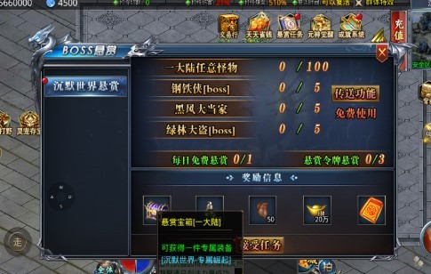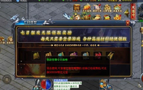 1、上线即送白银赞助,获取超强生命加成,攻击加成,防御加成,爆率加成!
