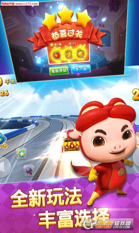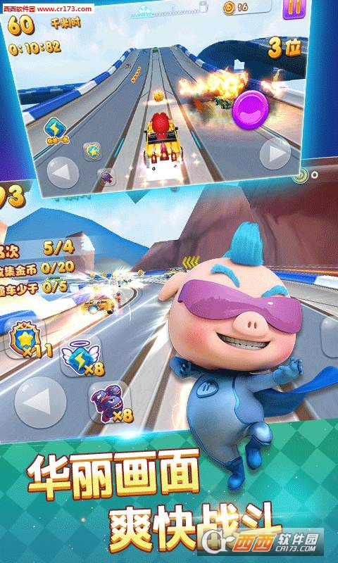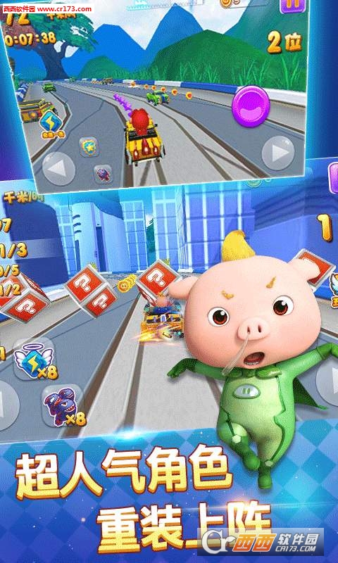 人气爆棚的动画角色,化身勇敢的猪猪侠,呆萌的小呆呆,BOSS一般的超人强,驾驶着酷炫的赛车在赛道上与对手一较高低!
