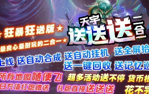 天宇送送送二合一是一款角色扮演游戏,激情刺激的传奇竞技游戏,全屏轻松拾取竞技,一键轻松回收,无限的传奇回忆,地图类型非常多,白嫖无限奖励,轻松快速起飞,非常爽快刺激传奇感受,服务器非常多,随意选择尝试,多个传奇大陆轻松尝试,二合一传奇竞技打斗,资源武器合成,威力会变大,非常值得去尝试的传奇竞技游戏。