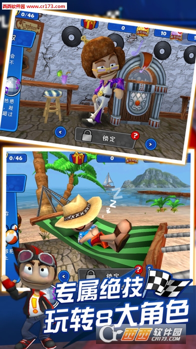 6、探索恐龙出没的丛林,熔岩喷涌的火山,美丽的海滩和神秘的沼泽。每一个独特的赛道是挤满了隐匿的快捷方式及惊喜。。