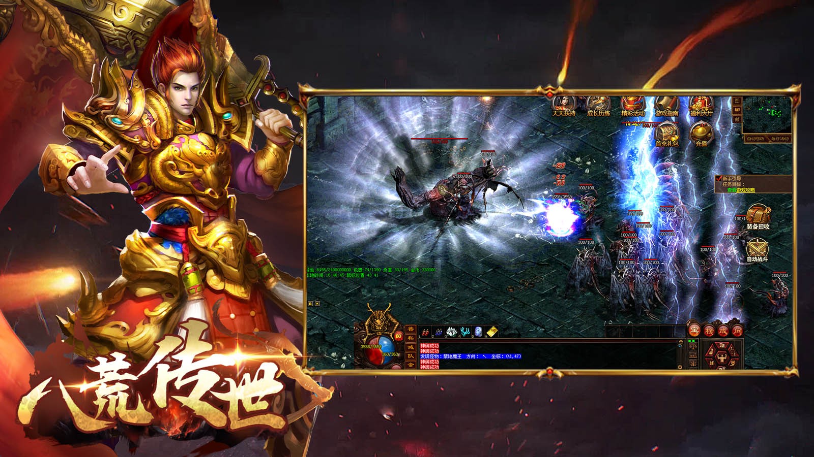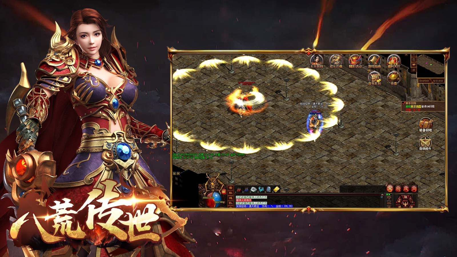 八荒传世为玩家带来经典复古的传世玩法,精彩庞大的世界地图,玩家能够自由地展开探索,大量的boss遍布其中,与各路高手组队战斗,瓜分大量的资源奖励,快速通过所有的考验,每次游玩都能够获得十足的惊喜,畅享热血的传奇战斗。