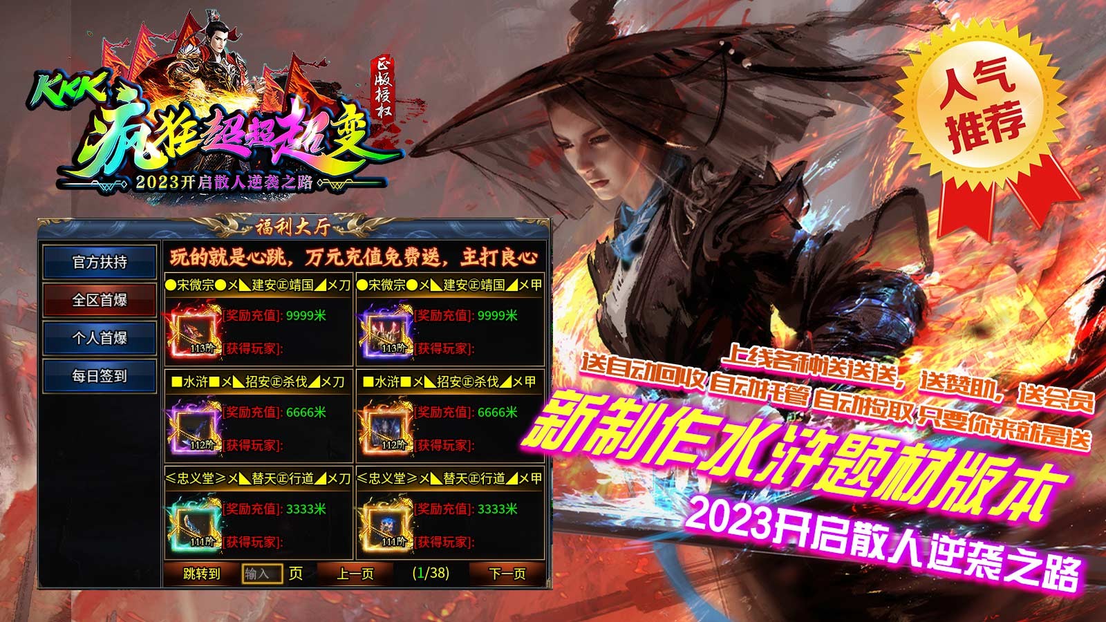 1.【福利礼包】:免费领取自动捡物,刀刀绿毒刀刀红毒,十倍真实爆率,充值卷,灵玉,龙币等等免费福利。