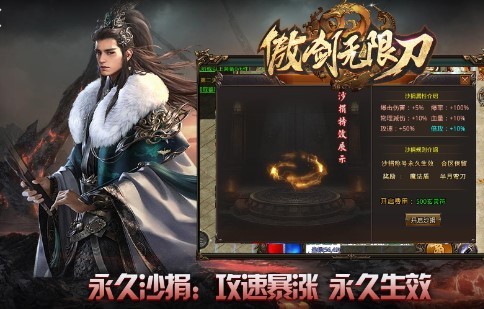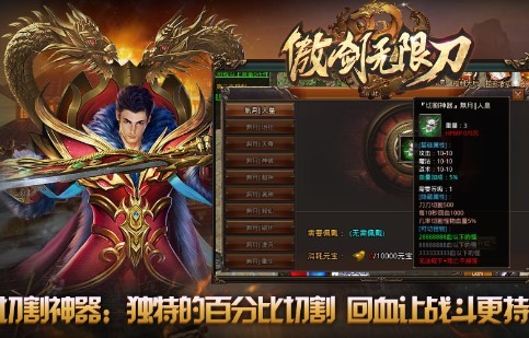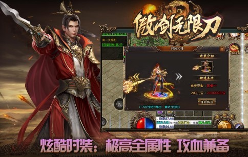 傲剑无限刀传奇来袭,经典无限刀传奇,传奇礼包奖励:福利卷轴*1,玄清丹*5,好运来*5,唯一传奇稀有称号,任务非常丰富,装备轻松爆。多元竞技传奇世界,战斗停不下来,永久纱绢竞技,攻速激烈上涨,永久生效的攻速和高爆几率,炫酷传奇时装,非常高的属性加成,攻守兼备,绝世强势技能,伤害范围划分,三大神器特戒资源轻松获取,非常值得去尝试的传奇竞技冒险游戏。