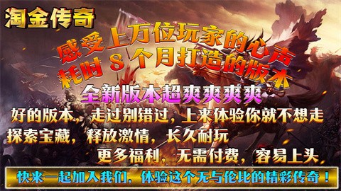淘金传奇为玩家带来全新的复古微变玩法,在游戏中玩家将要加入到全新的传奇世界,诸多精彩的场景都等待着你的探索,强力的野怪boss即时刷新,加入到刷怪打金的战斗之中,一切神器全靠爆,只要花费时间即可获得大量的奖励。