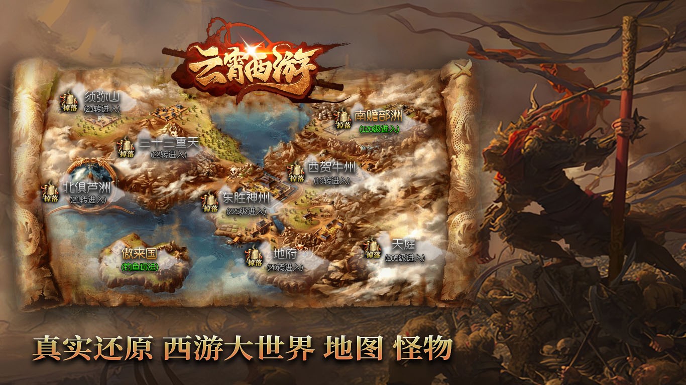 3.真实还原西游大世界,四大部洲,南赡部洲、西牛贺洲、东胜神洲、北俱芦洲、天庭地府。