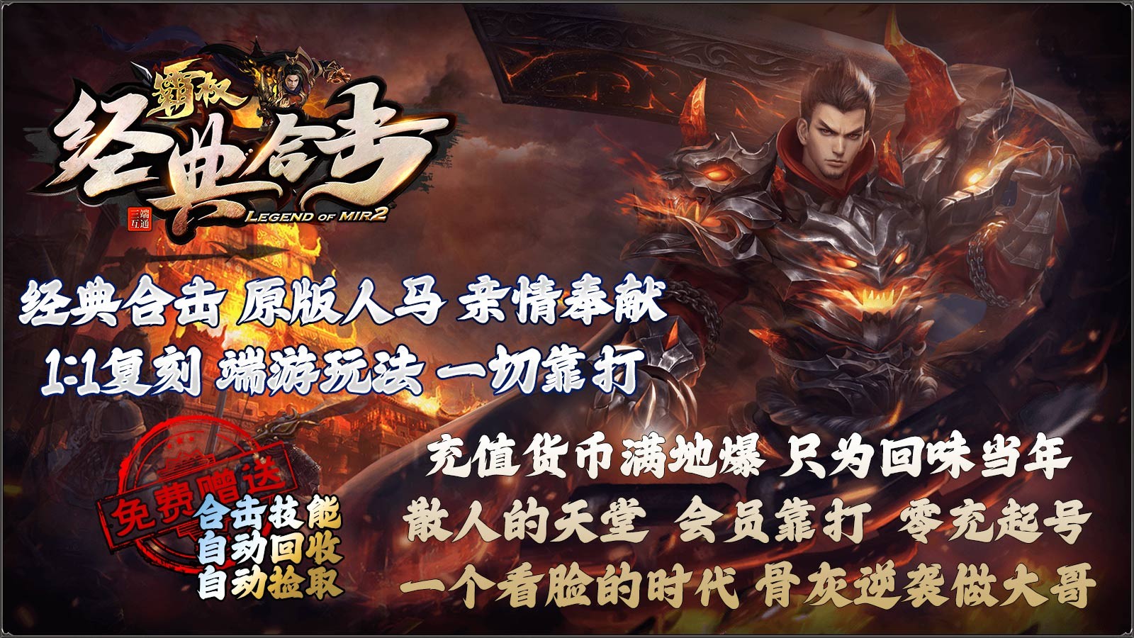1.爆率全开,所有装备靠打,无充值装备。