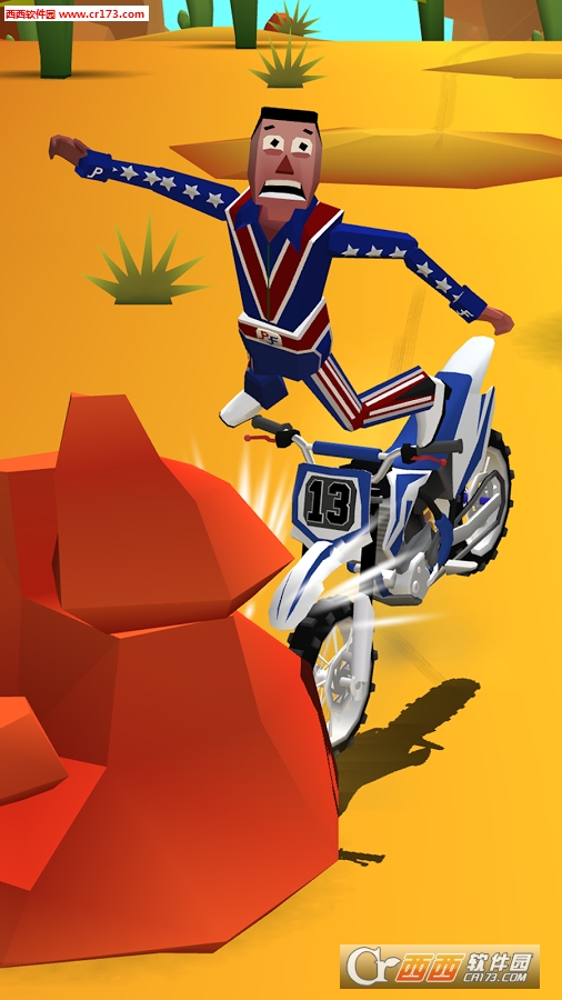 Phil Faily在开车时总是倒霉连连......如今他换了辆摩托车!Phil骑着摩托车在内华达沙漠观光游览时被迫出了公路外,掉到了陡峭的路堤边,来到了危险和充满障碍物的地带。Faily Rider由全球最受欢迎的应用FAILY BRAKES的开发者推出。在这个以物理学为基础的摩托车游戏中,你必须在山脉之间设法躲避无尽的危险障碍物,如仙人掌、岩石、车流和火车,享受惊险有趣的驾驶体验。新车,新路,同样的Faily乐趣多多。