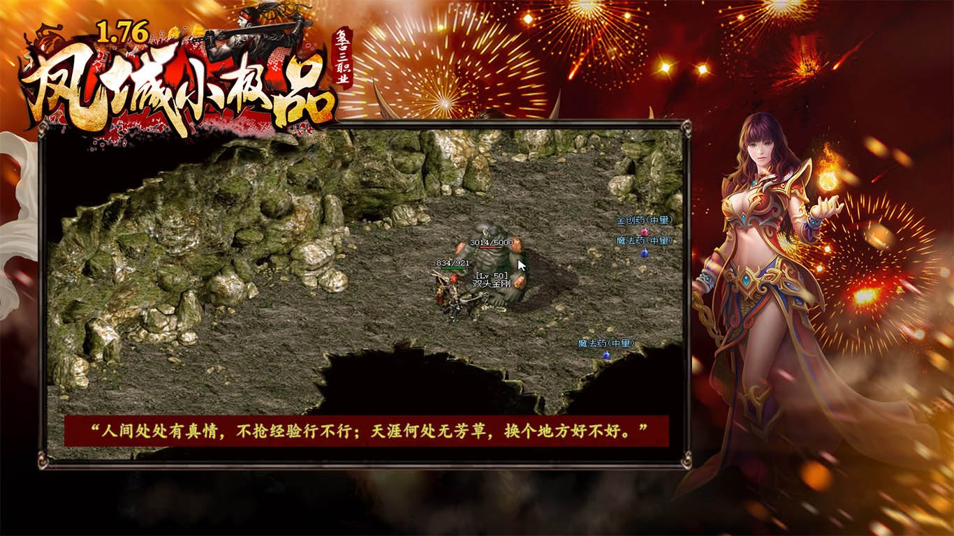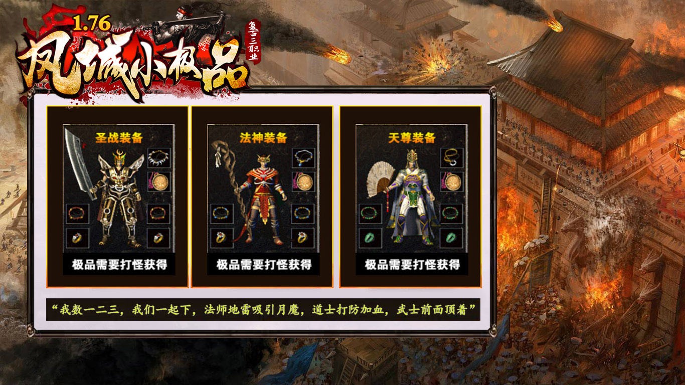 3.本游戏为1.76复古版本,1:1还原经典玩法,经典的三大职业完美平衡,随时都能加入到刷怪打金战斗中,获取遍地神装,快速提升等级。