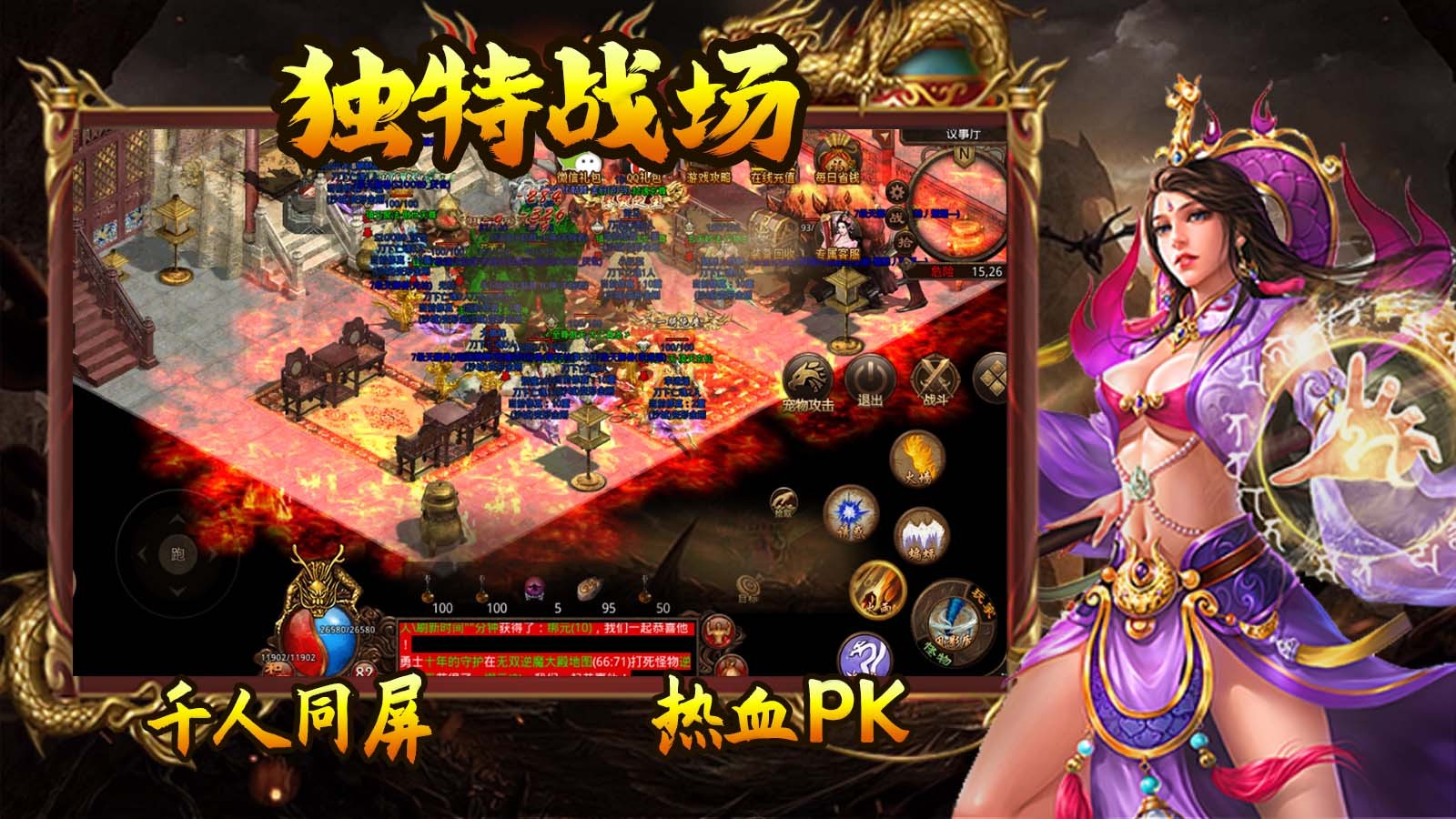 这款游戏有着经典爽快的传世冒险玩法,各种不同的场景都可以自由切换,所有的技能供玩家选择,强力的大招无冷却自由释放,搭配属于自己的战斗方式,称霸整个传奇世界。