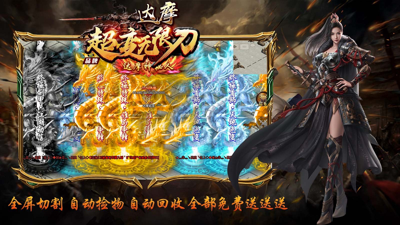 1.玩家上线就送:自动捡取,自动回收,大背包,大仓库,20倍充值,起步超级爽。
