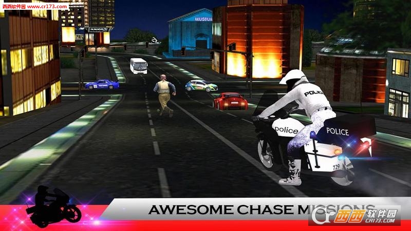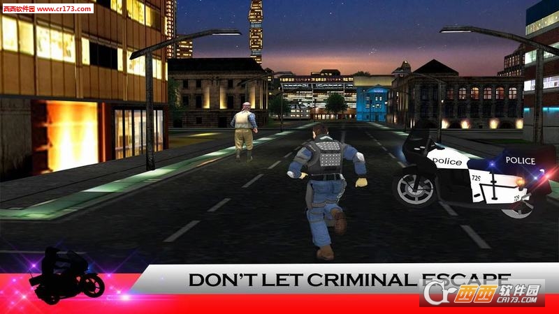 警方摩托:刑事大通,玩家在这里扮演的是一名正义的警察,在凶案现场凶手逃脱了,但是你已经掌握了凶手的 行踪,玩家需要利用身边的摩托车,去追捕逃犯,将他绳之于法!
