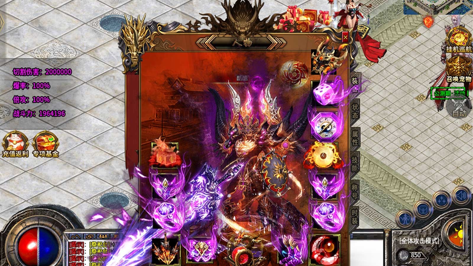 大屠龙融合了更适合玩家们的多种趣味传奇游戏经典,原汁原味的经典传奇打造,创新多元化的玩法精彩来袭,更加适合玩家们的趣味魂环系统等超多有趣的玩法来袭。 大屠龙游戏福利 充值比例1: 1钻石充值比例1: 1000元宝 ★自动拾取、全屏自动拾取、超级复活装备....