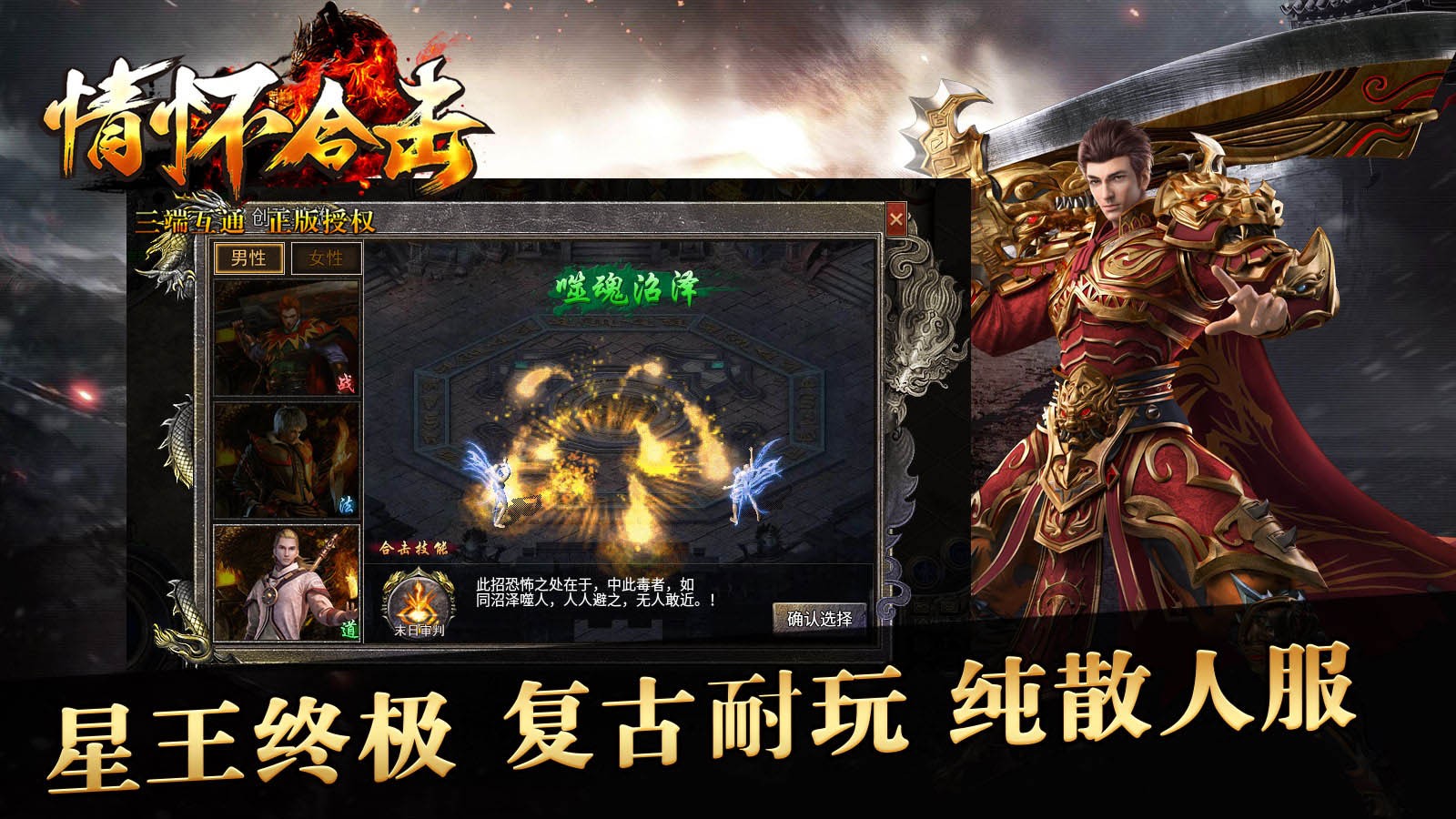 情怀复古合击为玩家带来复古的传奇冒险玩法,在游戏中玩家将要进入到传奇世界中,诸多精彩的副本挑战等待着你的参与,经典的三大职业供玩家选择,尝试不同的搭配方式,与各路高手进行同台竞技,尽情地发挥最佳的实力,畅享精彩的对决挑战。