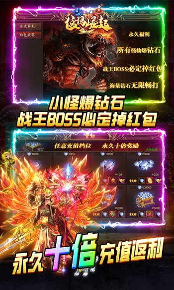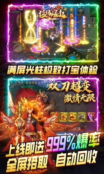 ★后缀说明:上线无需充值,即可获得自动回收,全屏拾取,切割神器等福利,游戏打怪可以爆钻石打金