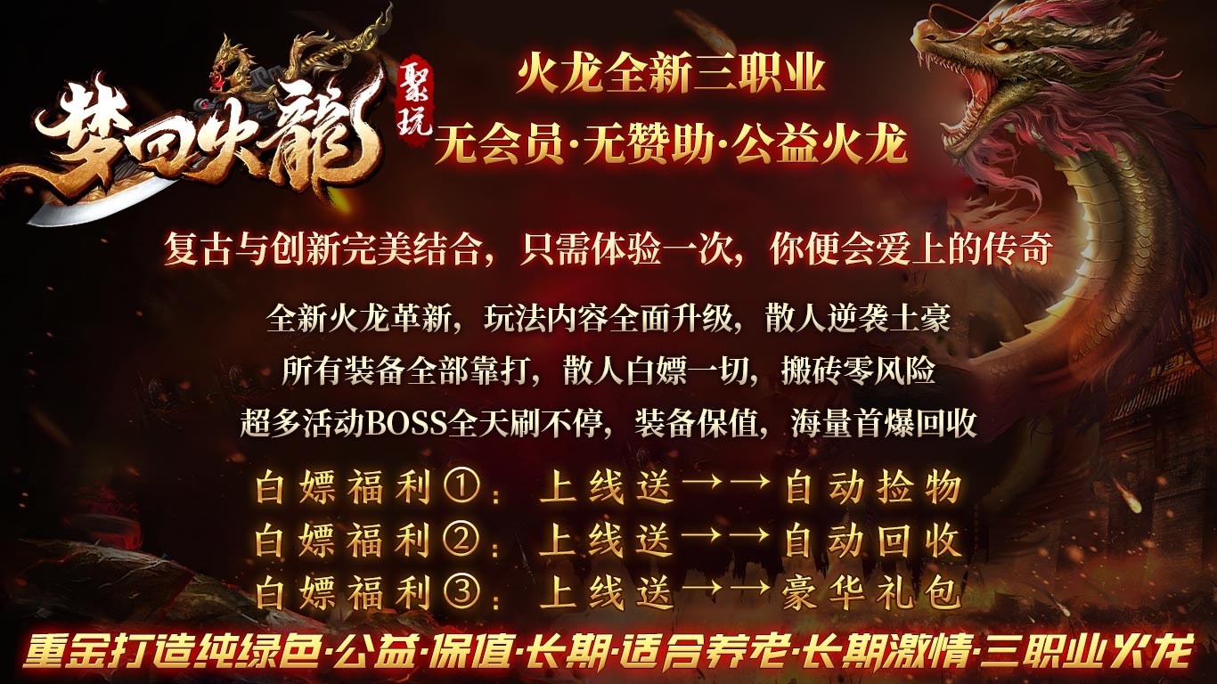 1.火龙全新三职业·无会员·无赞助·公益火龙。