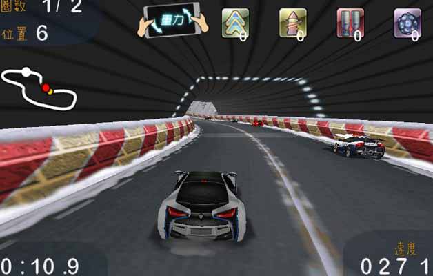 利用重力感应,左右摇摆屏幕控制赛车方向。