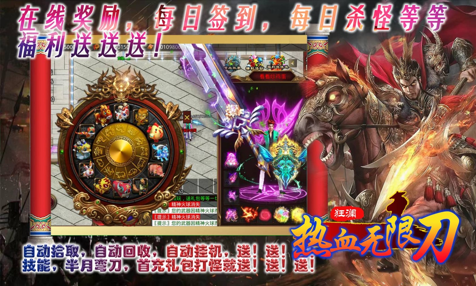 狂澜热血无限刀有着经典的无限刀玩法,开局即送满攻速,加入到全新的区域中,所有的野怪和boss即时刷新,尽情地享受刀刀暴击的爽快体验,获取大量的装备和奖励,助你快速到达战斗力的巅峰,体验热血的对决挑战,称霸整个传奇世界。