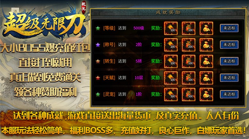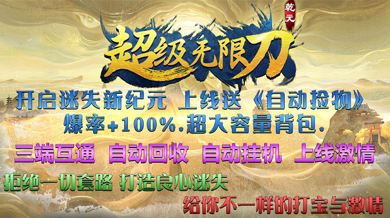 乾元超级无限刀为玩家带来相当精彩爽快的传奇玩法,开局即可获得满攻速,加入到开放式的传奇世界中,所有的野怪boss即时刷新,尽情地享受刷怪打金的爽快体验,体验全屏光柱的震撼感受,获取稀有的神装和奖励,书写你的传奇冒险之旅。