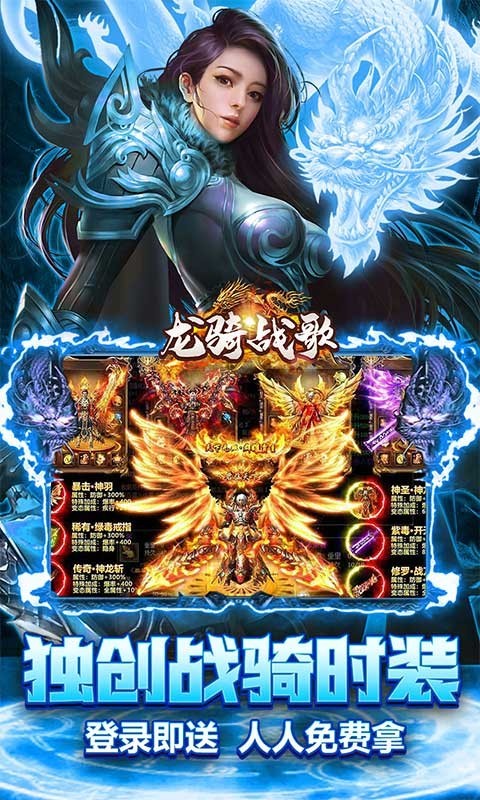 龙骑战歌福利版来袭,刺激传奇系列游戏,独创传奇竞技玩法,刺激养龙竞技玩法,全新传奇体验轻松尝试,无限的资源奖励轻松爆,传奇充值返利奖励非常丰富,非常良心的传奇游戏,多元服务器轻松尝试,跨区开启刺激竞技,上线送金龙,战骑,神器,人人轻松免费获取传奇奖励,超变单职业传奇竞技游戏,非常值得去尝试的传奇冒险竞技游戏。