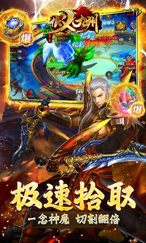 侠义九州魂环版来袭,刺激非凡的传奇竞技游戏,刺激传奇竞技游戏,道具神器非常丰富,登录送特权和魂环,学满压制,轻松渡劫,多样战斗传奇玩法轻松尝试体验,无限传奇特色竞技,炫酷技能特效,各种强力法器轻松使用,时装轻松搭配,稀有称号非常珍贵,一刀轻松爆资源,沙城无限激情竞技,非常值得去尝试的传奇竞技游戏。