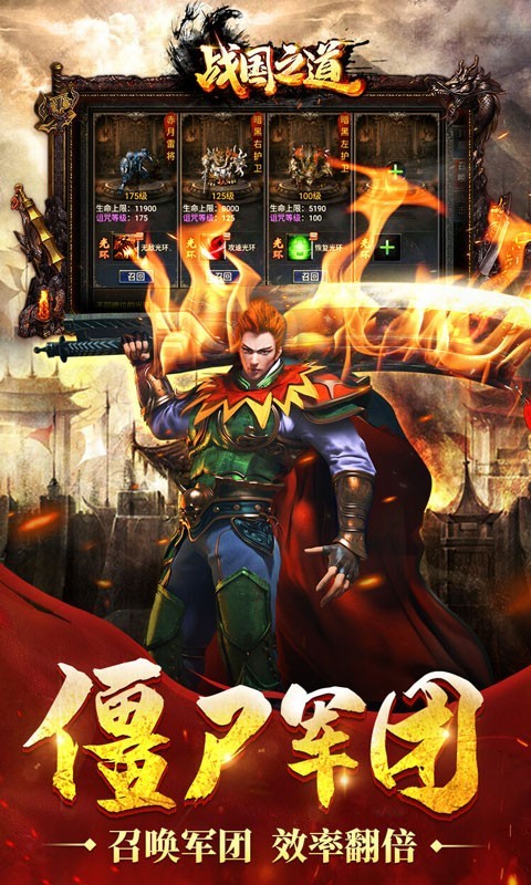 战国之道返利版来袭,刺激传奇竞技游戏,经典复古传奇游戏,激情国战竞技玩法,三职业传奇竞技游戏,刺激打怪竞技传奇,轻松地游戏玩法和操作,游戏商城道具非常丰富,元宝红包大派送,升级送无限传奇红包和元宝金币奖励,非常多的稀有神装等待玩家去尝试,各色任务轻松尝试体验,丰富多变的传奇副本,非常值得去尝试的传奇竞技游戏。