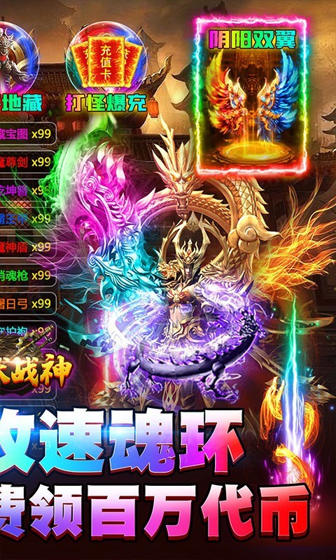 2、创角送百万充值元宝、百万绑元、红色战将地藏!