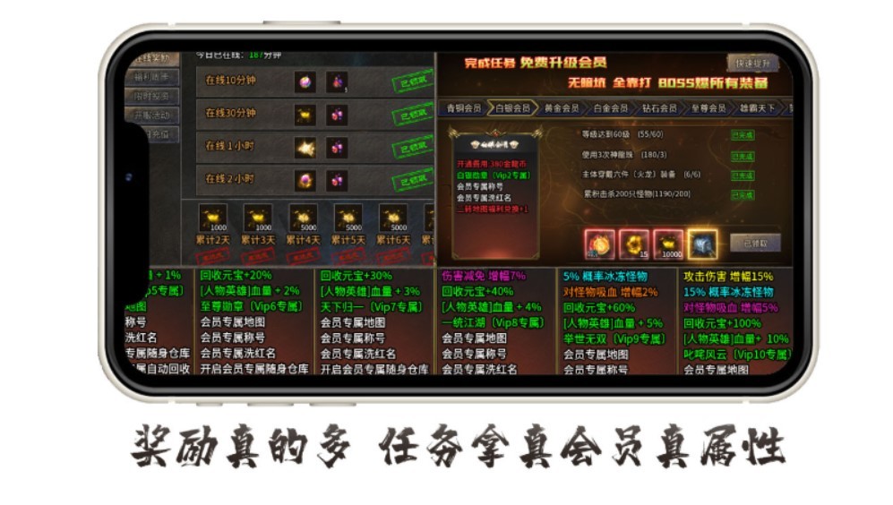 1.上线领1000元充值卡,上线即送VIP7!元宝18888!7档VIP礼包福利,超值福利拿到手软!