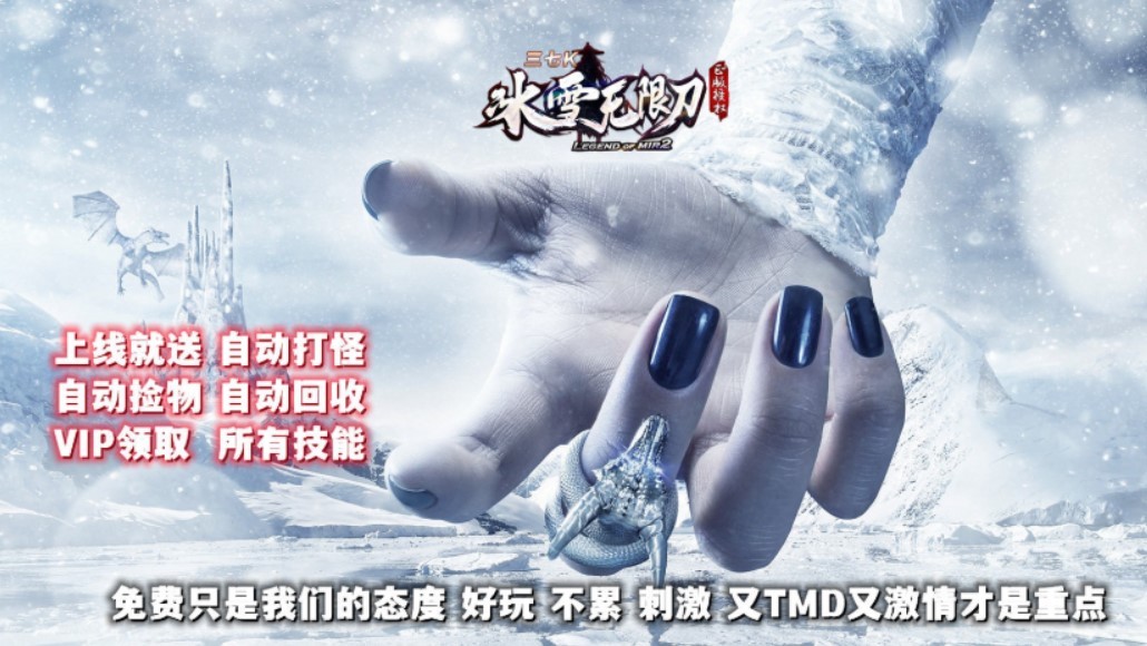 三七k冰雪无限刀传奇来袭,刺激冰雪传奇竞技游戏,无限刀传奇竞技游戏,传奇礼包奖励:绑定元宝*50000,琉璃渊博啊*500000,万象星魂*5,上线就送各色传奇福利,自动拾取打怪玩法,所有技能轻松尝试使用,急速竞技传奇,全新竞技无限刀,不花钱一样轻松尝试游戏,非常值得去尝试的传奇竞技游戏。