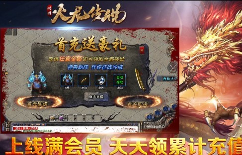 鸿图火龙传说传奇来袭,激情火龙传奇版本传奇,传奇礼包奖励:超级盒子礼包*1。打破传统的传奇玩法,非凡刺激的游戏感受刺激沙攻,皇城刺激对战,争夺第一,传奇色彩拉满,上线满攻速,各色角色随意创建获取,boss轻松天还在那, 传奇里面任意的怪物都有可能掉落稀有资源神器。血量越少的野怪掉出极品的几率越大,非常值得去尝试的传奇竞技游戏。