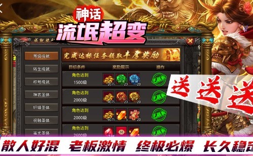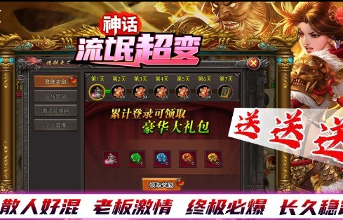 神话流氓超变传奇竞技游戏来袭,激情无限的超变传奇竞技游戏,传奇货物轻松全爆,特色传奇竞技玩法,激情国战竞技玩法,多样刺激传奇操作带你玩转传奇大陆,专属的传奇魂器资源,多渠道轻松获取奖励元宝,轻松交易设计,神器搭配,技能轻松释放,轻松组队,散人专属传奇,非常值得去尝试的传奇竞技游戏。