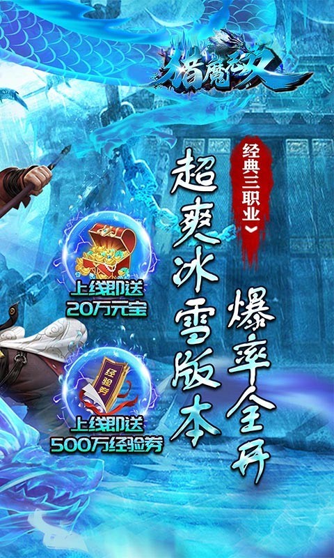 猎魔无双冰雪神器版来袭。神器传奇。冰雪系列传奇,三职业传奇,快速杀怪,玩家可以一边刷怪一边去完成个二色传奇任务,轻松挂机传奇竞技,传奇爆率全开,自动拾取回收,非常保值的回收系统,超多的传奇玩法轻松尝试,传奇带来了无限的乐趣,无限抽奖活动。斗笠盾牌提升战力,非常值得去尝试的传奇竞技冒险游戏。