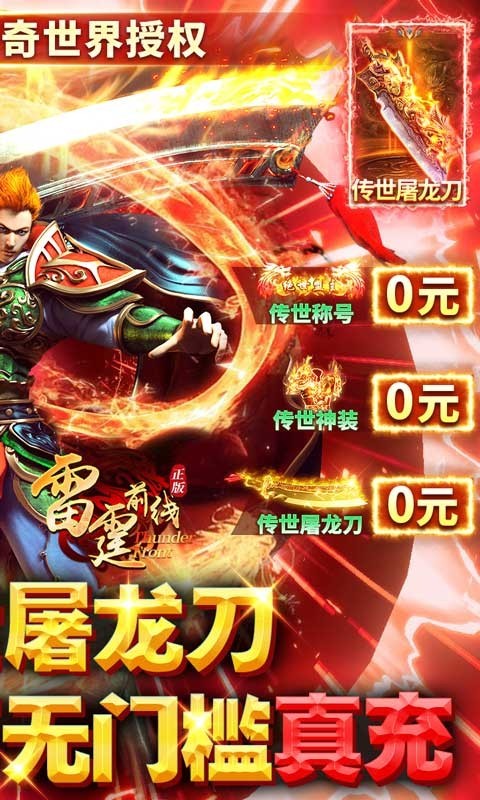 1、上线送满V、黄金屠龙、98元每日首充充值卡,绝版称号,还有海量升阶材料!