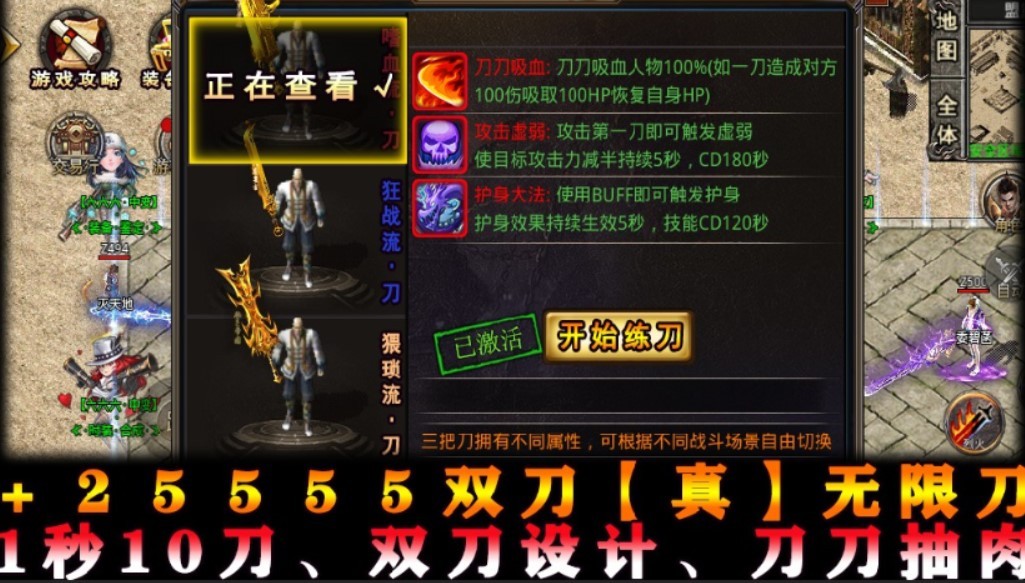六六六中中中变传奇竞技游戏,非常纯真的复古传奇竞技游戏,沙城激烈捐献,完美搭配的传奇竞技游戏,大团队制作传奇,超级耐玩的传奇。无限刀传奇竞技游戏,礼包奖励:刀刀切割卷轴*1,刀刀冰冻卷轴*1,复活装备*1,激情趣味的双刀传奇竞技玩法,非常值得去尝试的传奇竞技游戏。